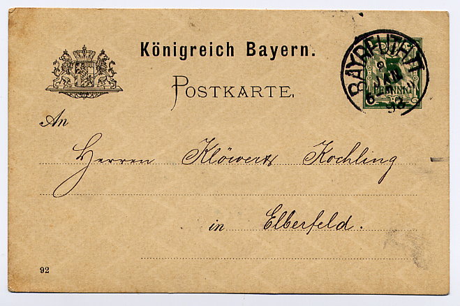 ediphil, bayrische Ganzsachen kann ich nicht gebrauchen, selbst wenn sie mit Posthilfstellenstempel versehen sind. Ich habe noch ein paar, aber zur Zeit nicht gescannt.