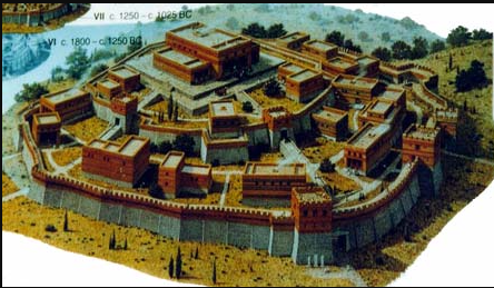 Eventuell könnte es aber auf der Briefmarke eine künstlerische Darstellung von Troja sein. Dies lag zu mindestens auch auf einem Hügel.