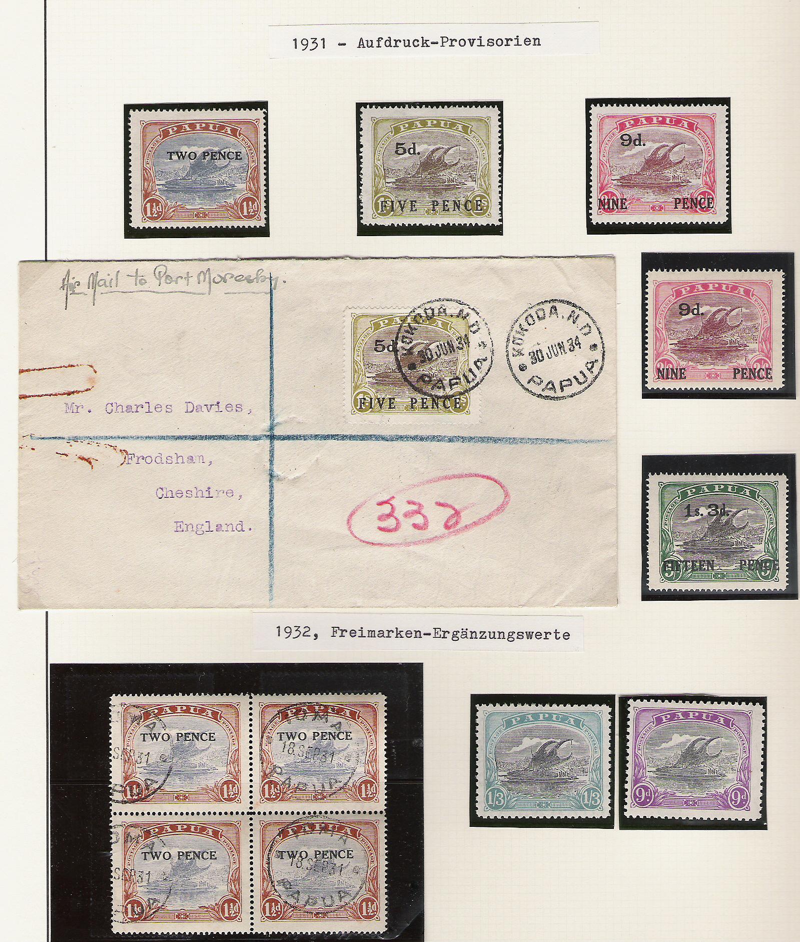 Das Motiv "Lakatoi" (Auslegerboot) mit den geschwungenen "Drachen"-Segeln befand sich von 1901 bis 1932 auf den Dauerserien-Marken von Papua (auch mit "OS"-Lochung und "OS"-Aufdruck sowie "Stamp Duty"). Während dieser 31 Jahre (!) gab es eine Vielzahl von Abarten aus den verschiedenen Druckereien. Der Philatelist hat also ein weites Betätigungsfeld. Der Trend geht wieder zu diesen alten Ausgaben hin, denn bei bereits in Katalogen abgeschlossenen Sammelgebieten ist eine "Neuheitenflut" schon lange ausgetrocknet. Sehr interessant sind natürlich auch die Stempel der verschiedenen Post Office's und die Flugpost-Belege.