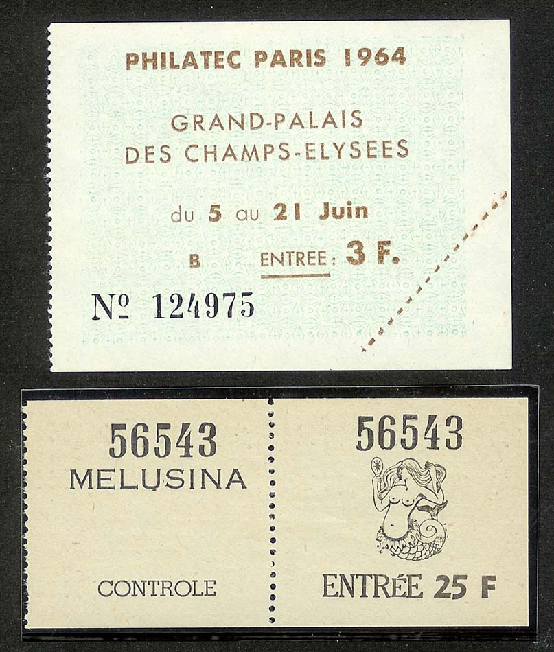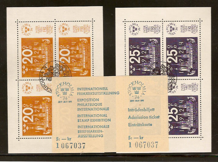 Verschiedene europaeische Laender haben zu unterschiedlichen Zeiten Marken oder Blocks verausgabt, die nur in Verbindungen mit einer Eintrittskarte zu einer philatelistischen Ausstellung erhaeltlich waren. Ich habe ein paar solcher Marken / Blocks von z.B. Schweden, Frankreich. Der Vorbesitzer hatte jeweils die unentwertete Eintrittskarte gemeinsam mit den Stuecken aufverwahrt. Vielleicht als Beleg fuer die zu den "guten" Zeiten des Sammelns, als die Marken erschienen sind, noch moegliche unverhohlene Abzocke der Sammler. ![]()