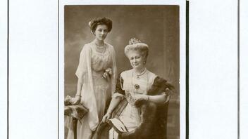 Kaiserin Auguste Victoria und Kaiser Wilhelm II, daneben Prinzessin Victoria Luise auf einer Privataufnahme, die aus dem Theatherwissenschaftlichen Archiv in München stammt.