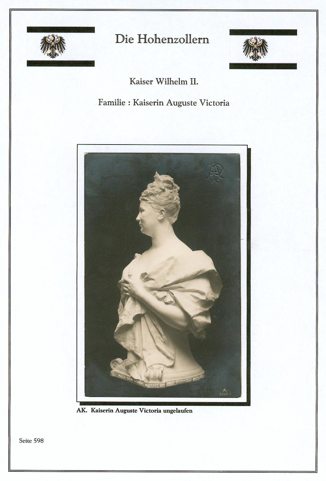 Eine ungelaufene Karte mit einer Büste der Kaiserin Auguste Victoria modeliert nach Prof. Reinhard Begas