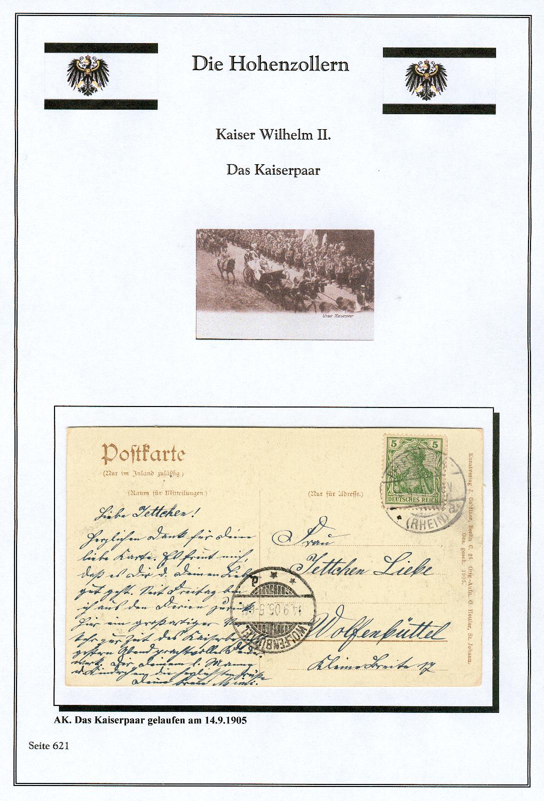 Das Kaiserpaar auf einer gelaufenen Orts-Postkarte vom 11.2.1905