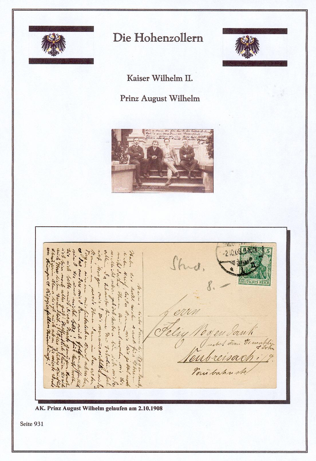 Eine gelaufene Karte bei der ein "Germaniahasser" :D die Marke herunter gerissen hat. Deshalb nur die Rückseite. " Se. Kgl. Hoheit Prinz Eitel Friedrich während seines Besuches auf dem Schiessplatz Wahn 18.Juni 1904 "