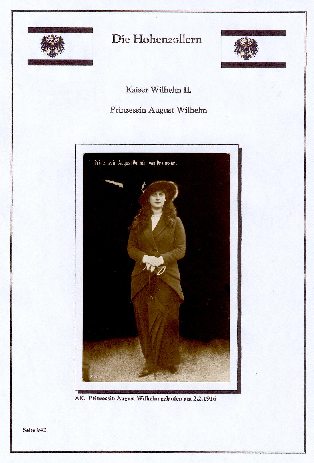 eine gelaufene Feldpost-Karte "Prinzessin August Wilhelm von Preussen" vom 2.2.1916