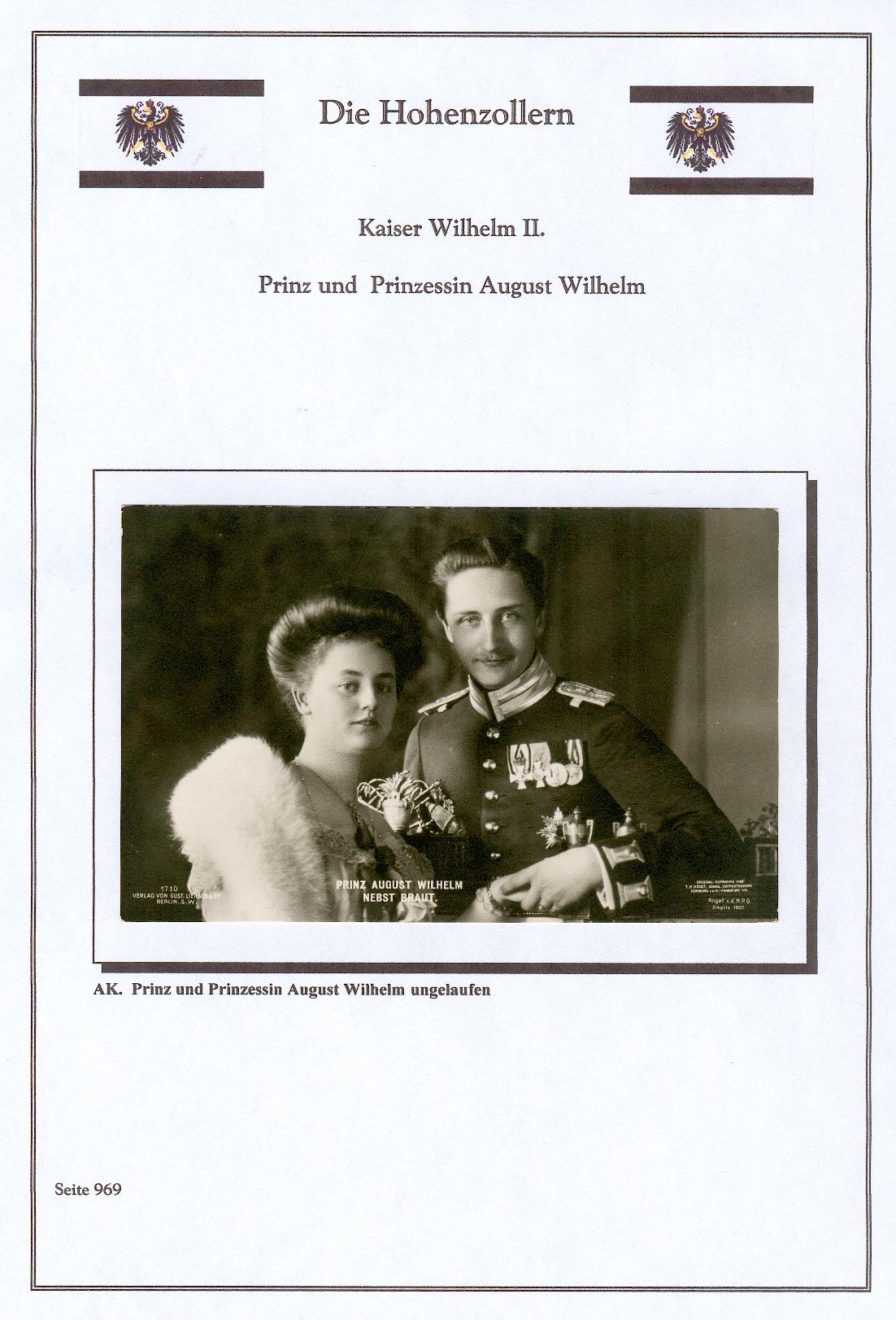 Ungelaufene Karte "Prinz und Prinzessin August Wilhelm von Preussen"
