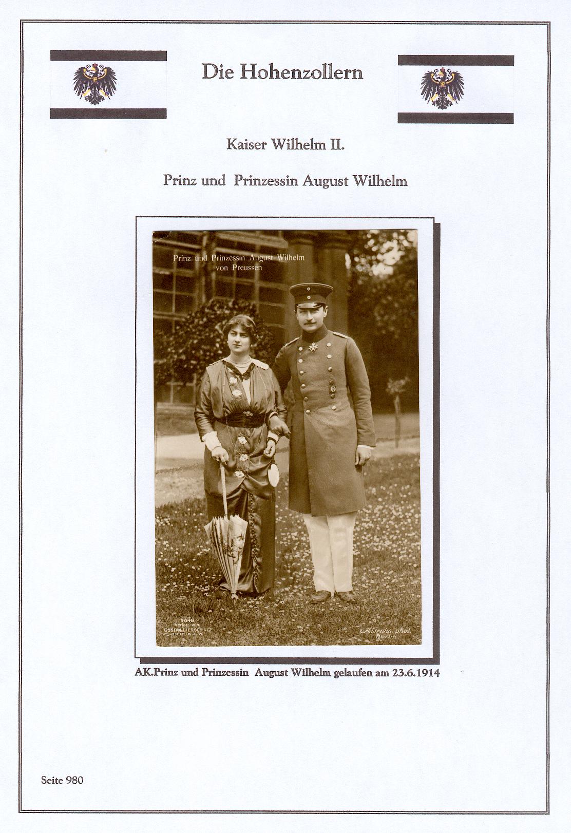 Ungelaufene Karte "Prinz und Prinzessin August Wilhelm von Preussen"