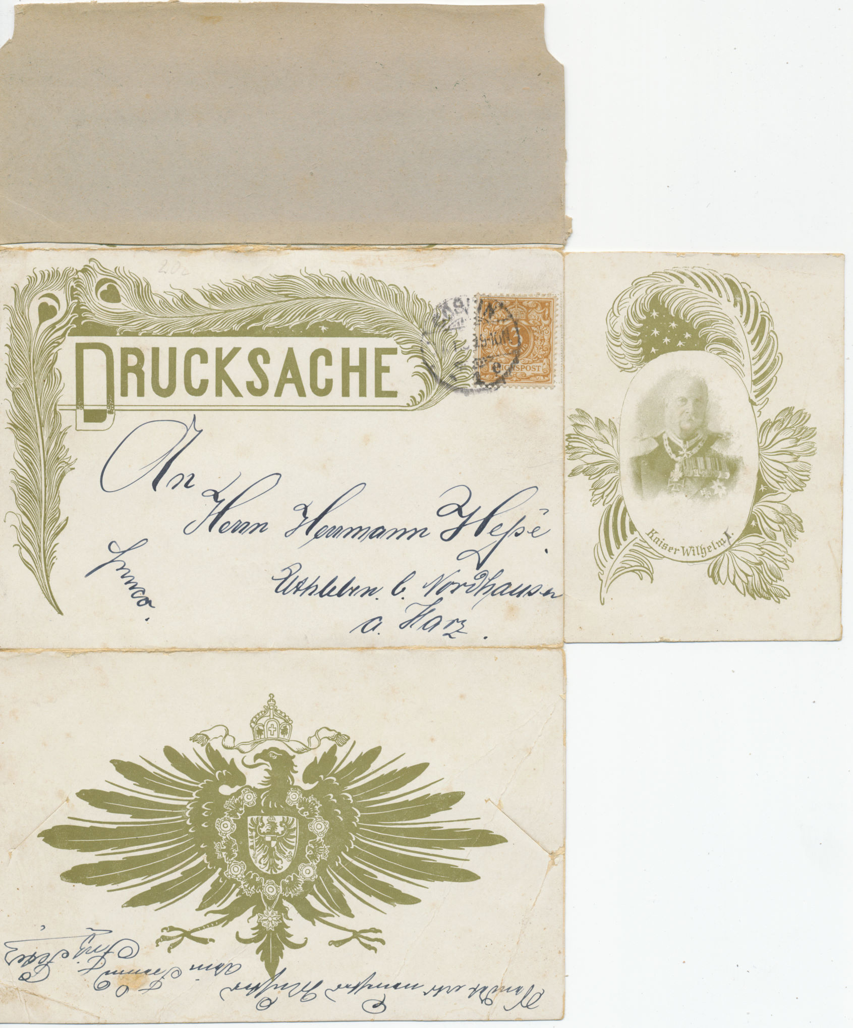 So kam es in der Krone Adler Zeit zu den ersten Klappkarten welche als Drucksachen für leppsche 3 Pfennig versendet werden konnten, welch ein Glück, denn von der Optik her muss man ähnlich schönes in der Philatelie lange suchen.