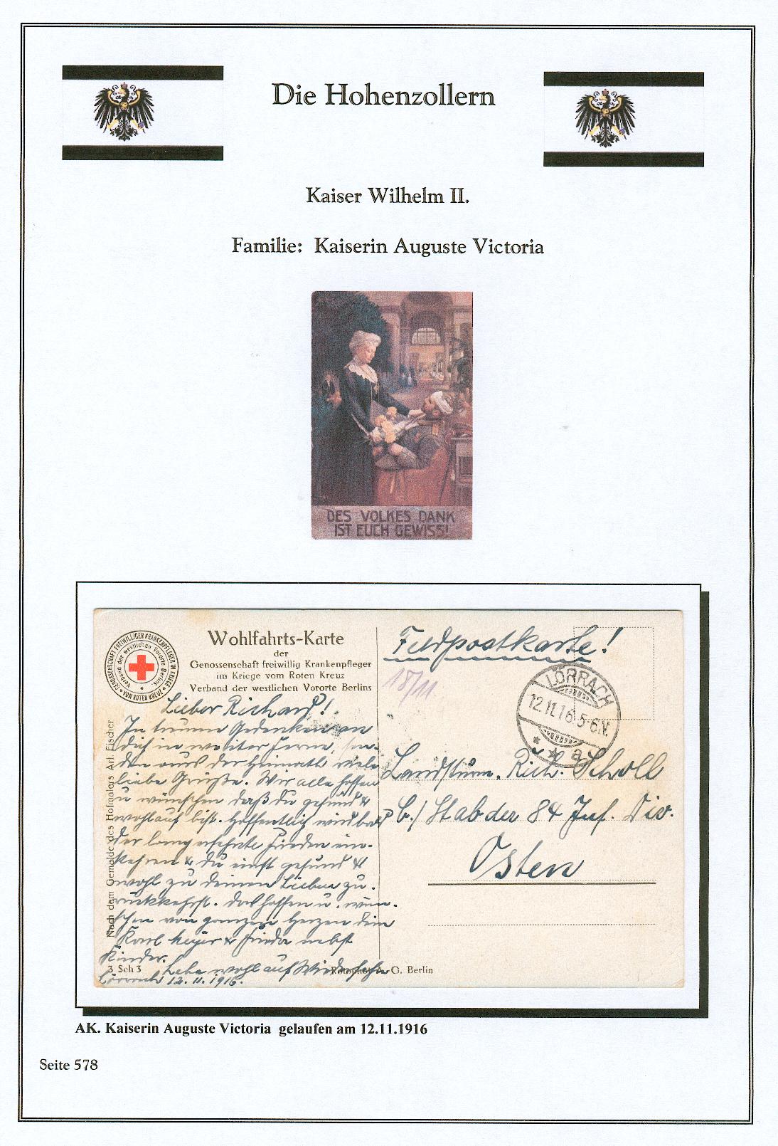 " Des Volkes Dank ist Euch gewiss " Kaiserin Auguste Victoria auf einer Feldpostkarte vom 12.11. 1916