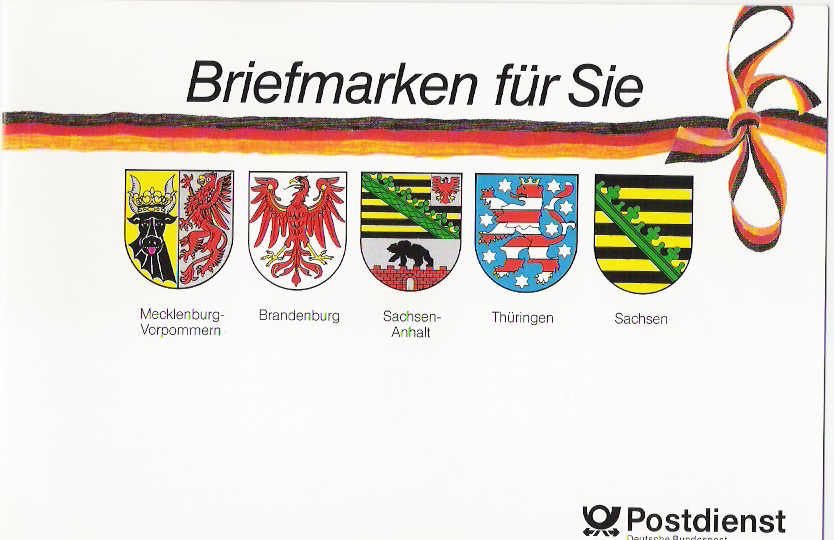 Offizielle Ausgabe der DBP wegen der Gebührenanhebung für die ehemalige DDR.Diese Ausgabe wurde für die Haushalte in den Neuen Bundesländern nur einmal pro Person ausgegeben.