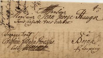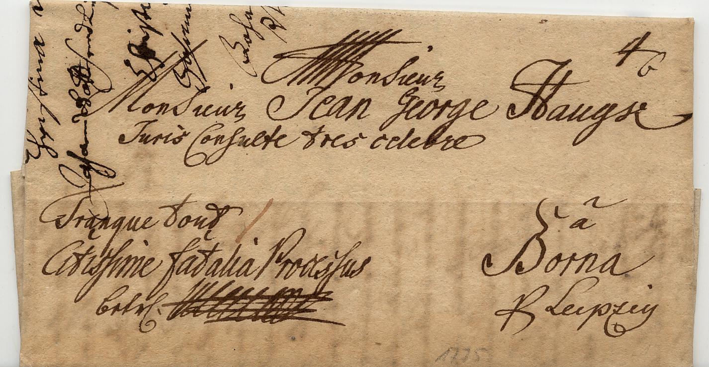 aber auf der Anschriftseite ist die Anrede in Französisch. Das war wohl so Mode. Aber wer kann das links unten entziffern. Und warum ist die 4 rechts oben durgestrichen, von Grimma nach Borna ist es ein Katzensprung, da müßte das Porto doch klar sein.