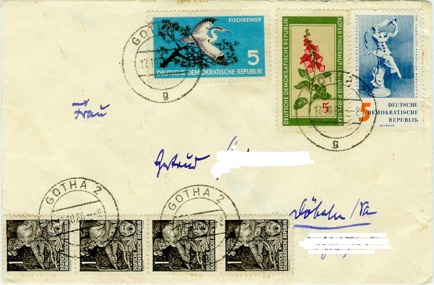 hier ein Brief mit zwei Sondermarken und zwei Dauerserienmarken.