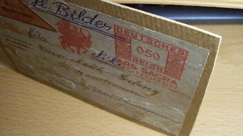 Somit ersparte sich die Firma die Briefmarken. Am Ende des Monates rechnete die jeweilige Firma die Gesamtsumme direkt mit der Reichspost ab. Zur besseren Kontrolle war im Stempel eine Zählziffer ( oben die 9605 über dem Reiter), die mit jedem Stempelabschlag weiterrückte. Die Wertstufe auf deinen Brief ist 50 Pf., was nicht häufig ist. Sie müßte aus der Gebühr für eine Drucksache von 251-500 gramm von 30 Pf. und der Nachnahmegebühr von 20 Pf. bestehen. Dies ist im allgemeinen ein seltene Portostufe, den Drucksachen über 250 gramm haben meist das Format von Aktentaschen.