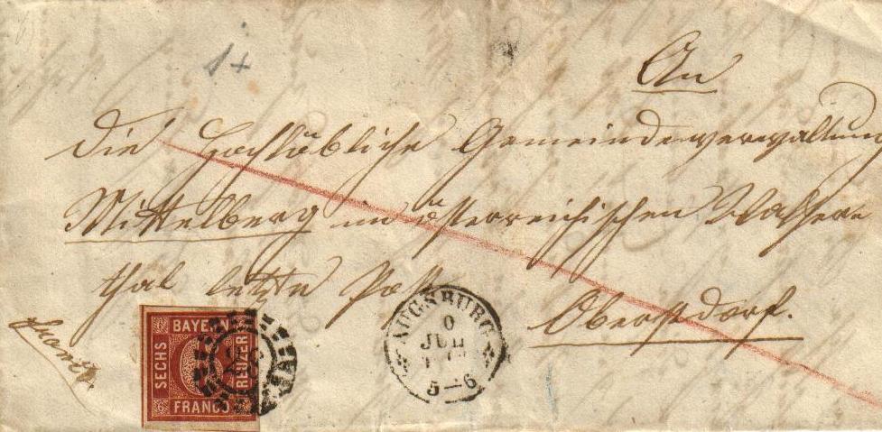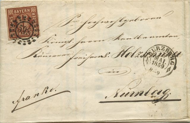 1864 galt in Bayern noch das bis 12 und über 12 Meilen - Prinzip, so dass ein einfacher Brief maximal 6 Kr. kosten konnte (über 12 Meilen).