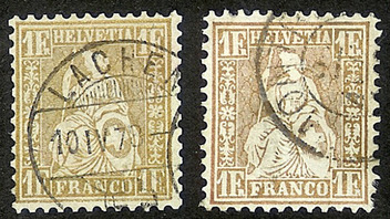 Von dieser "Sitzenden Helvetia" gibt es 3 verschiedene Farbvarianten: