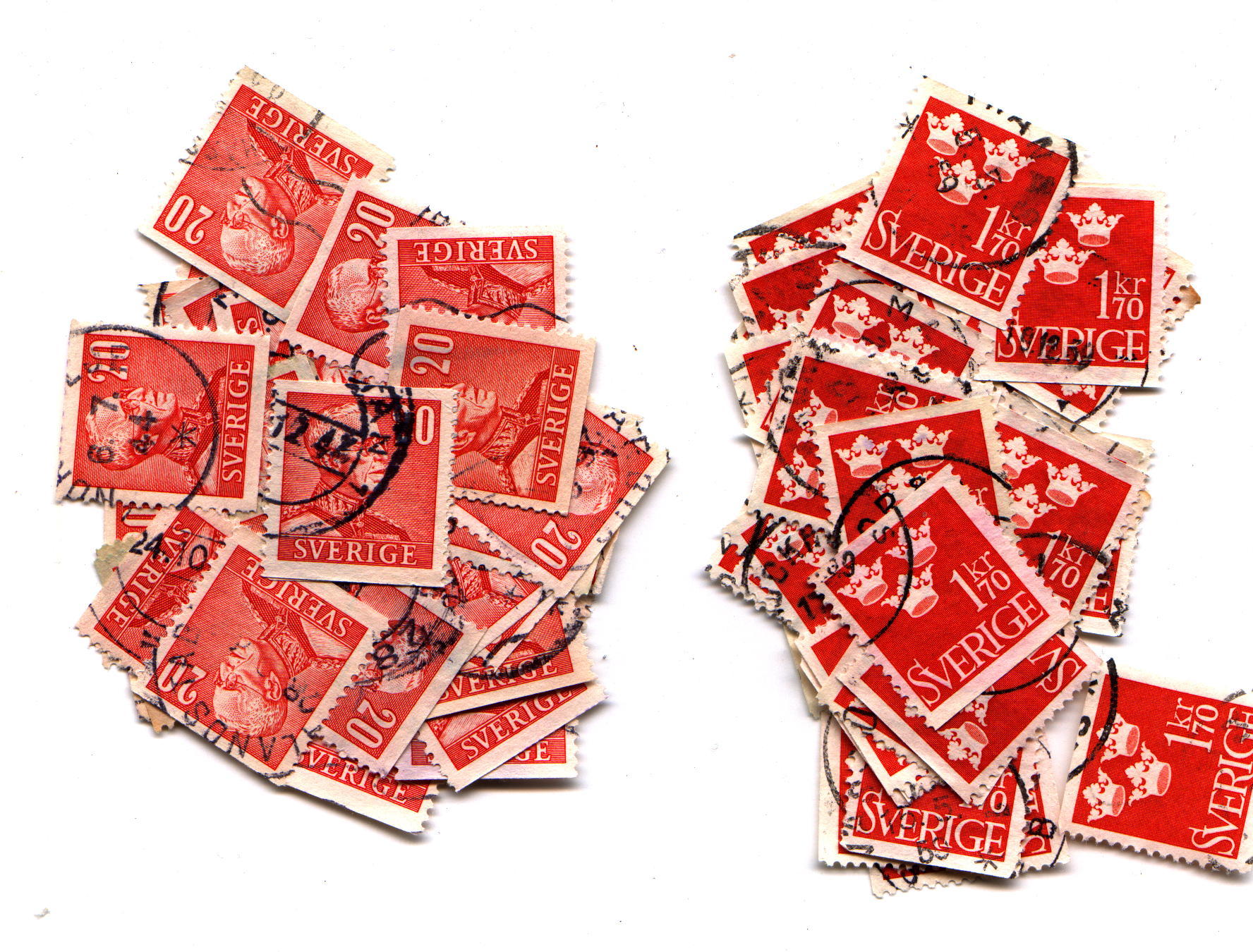Ich weiß nicht woher, aber sie sind da. Einige hundert Marken von Schweden Nr. 258 und 362. ( Bild zeigt Auszug )