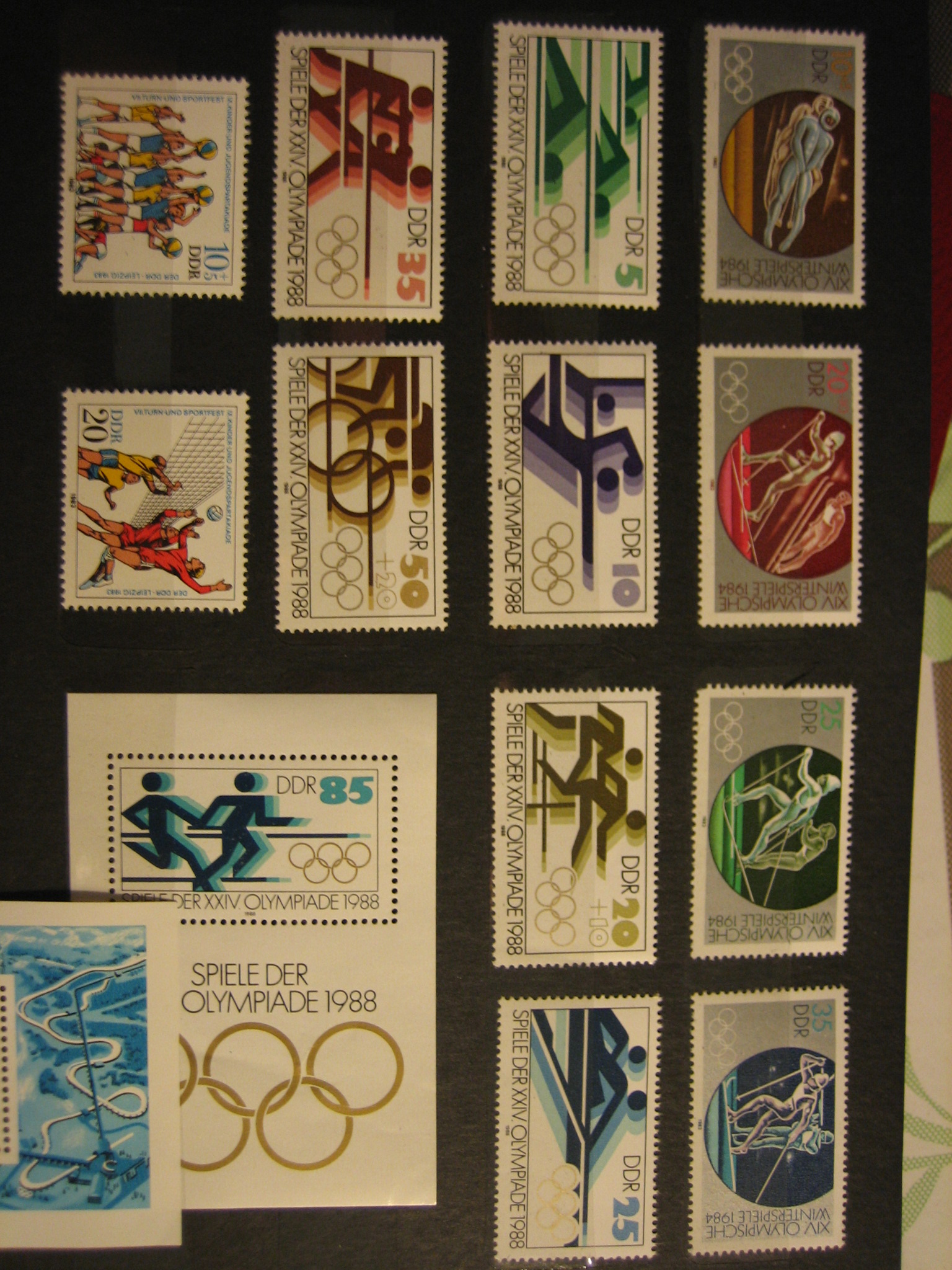 kann mir jemand sagen was der satz olympiade 1984 wert ist.2006 hat jemand ein bild(5 pfennig marke) im forum ausgestellt allerding mit beschädigter ecke und meinte sie sei wertvoll - ich habe im album meiner oma nun den ganzen satz gefunden,siehe bild. danke