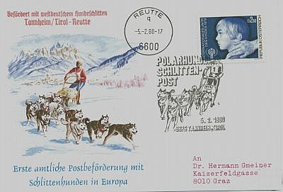 Hermann Gmeiner war der Gründer der Kinderdörfer die zahlreiche philatelistische Ballonfahrten und eben auch diese Hundeschlittenfahrten organisierten.