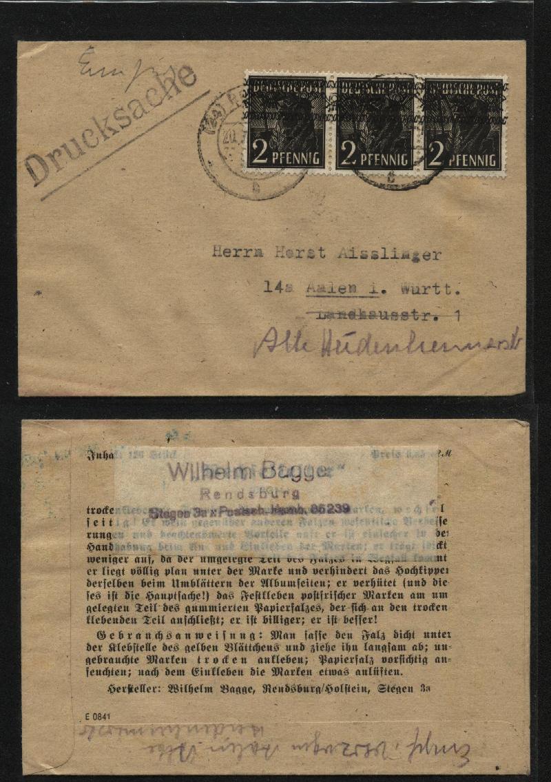 Femeinschreiben der 2. Gewichtsstufe (20 - 50 g) 48 Pfg. plus Einschreibegebühr von 60 Pfg. (Tarif vom 01.03.1946 - 31.08.1948)