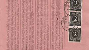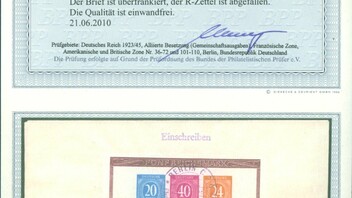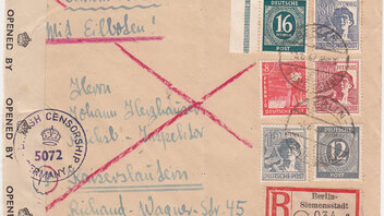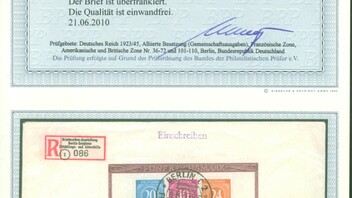 Und nun noch die geschnittene Version Block 12 B, ebenfalls auf Ortseinschreiben und demnach auch um 12 Rpf überfrankiert.