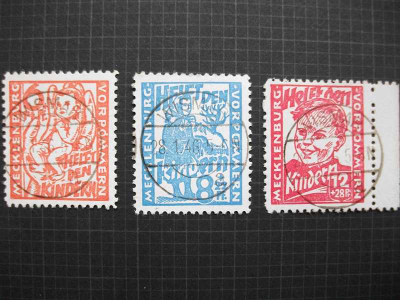 Das sind Marken der SBZ für die OPD Schwerin (Mecklenburg - Vorpommern), historisch vor den Kontrollratsmarken anzusiedeln.