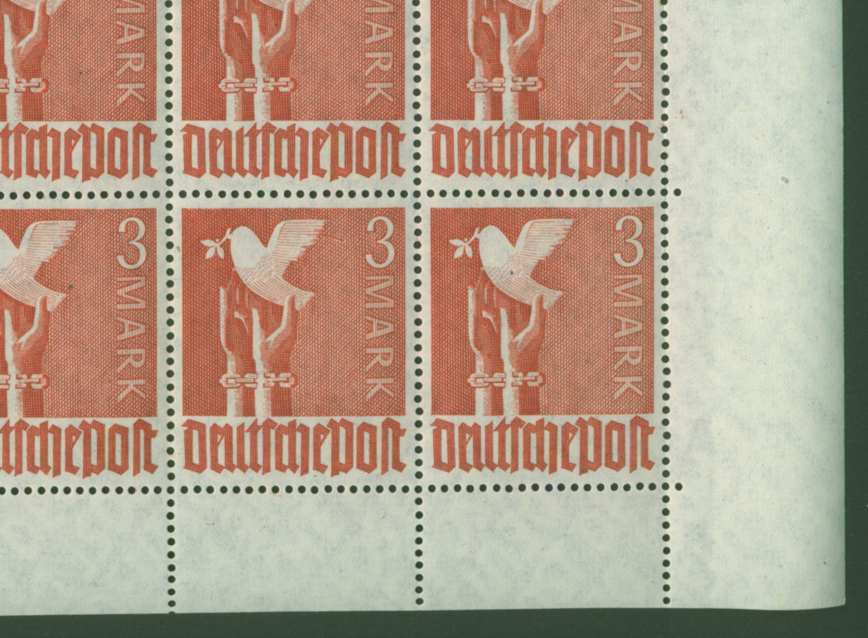 In Fortführung meiner kleinen Reihe zur 5 RM Taube heute zwei Eckrandviererblocks, jeweils mit der Plattennummer 1.