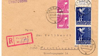 Es handelt sich dabei um einen Einschreibbrief der 2. Gewichtsstufe zu 10,80 Mark = 1,08 DM. Der Beleg wurde am 22.6.48-10 Uhr in Passau abgestempelt und ist geprüft.