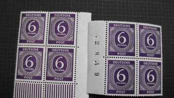 Bei meinen 15 - 10 - 8 - 6 er Marken entdecke ich Farbunterschiede. Bei einem 80er Viererblock, habe ich keine Vergleichsmarken. Trotz Michel Farbenführer und Michel Spezial kann ich die Farben nicht einordnen. Ist es vielleicht möglich mir anhand der Bilder bei der Farbenbestimmung zu helfen?