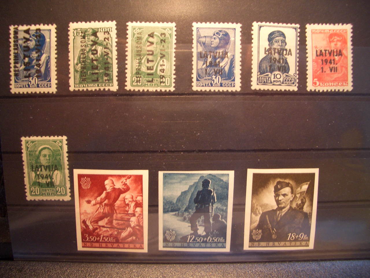 Es handelt sich mM nach um Litauen / Lettland Marken, im Dt. Michel unter Dt. Besetzungsausgaben 1939/45 (Laibach/Lettland/Litauen) zu finden.