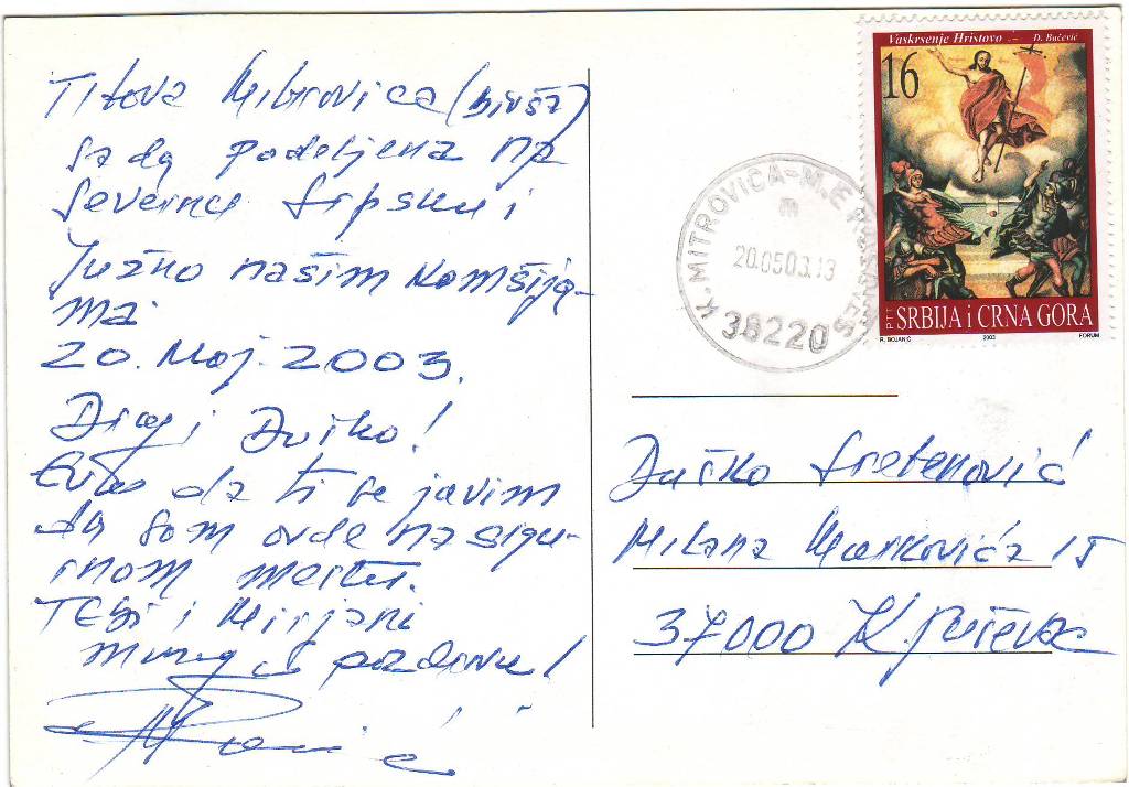 Ob jetzt der Kosovo und Serbien ihre Briefmarken gegenseitig anerkannt haben oder nicht, kann ich nicht sagen. Auch sind mir Postkriegs-Belege von früher zwischen diesen beiden Lländern nicht bekannt, vielleicht kann ja jemand etwas dazu zeigen?