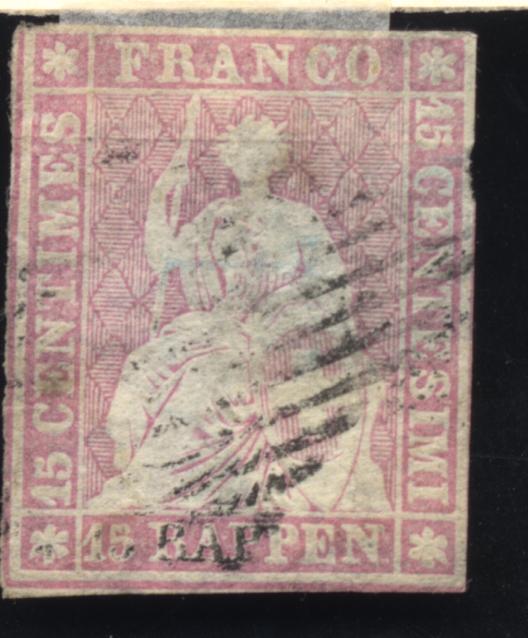 Michel-Nr. 15 II Aym, 1855, Berner Druck I...Kat.Wert ca. 80€.
