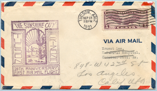 dies ist ein Brief mit Zudruckstempel 20. Jahrestag des Erstfluges tucson Arizona. Stempel vom 23.9.1931 von tucson nach Los Angeles.