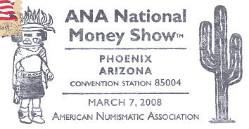 Neuer Sonderstempel aus den USA vom 7.3.2008 "ANA National Money Show" mit Saguarocactus.