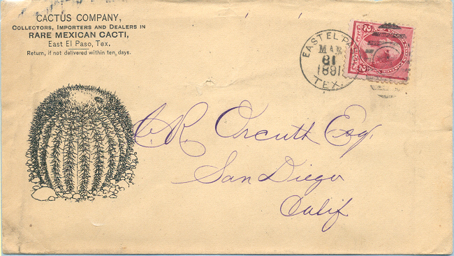 Anbei noch ein alter Brief vom 31.3.1891 Werbeaufdruck mit Echinocactus grusonii.