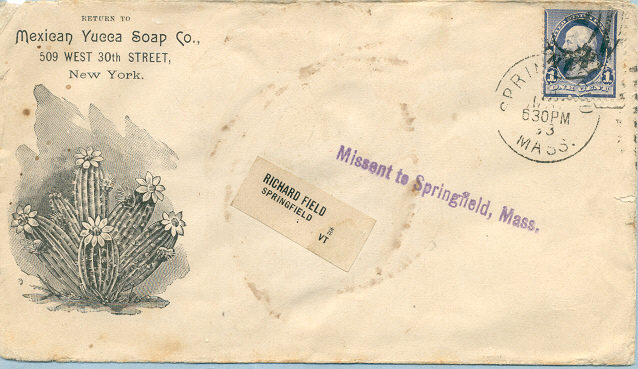 Auch hier ist leider die Adessenangabe unzureichend, was auf eine Gefälligkeitsabstempelung hindeutet, obwohl der Brief mit Datum vom 7.10.1897 ist. Werbeaufdruck mit Echinomastus.