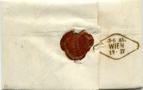 Die Vergünstigung war aber, dass, wenn der Brief ohne die Muster unter einem Loth wog, der Brief mit den Mustern je 2 Loth nur den einfachen Satz kostete. Hier haben wir also einen Brief vor uns, der unter einem Loth wog, der aber mehrere Muster anhängend hatte, die zusammen mit dem Brief über 2 bis 4 Loth exklusive wogen. Je 2 Loth die einfache Taxe von 9 Kr. = 18 Kr., wie verklebt.