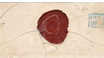 Auf der Rückseite sieht man ein Siegel und einen Ankunftsstempel von Chur vom 29. August. Eventuell wurde der Brief von einer Zollbehörde geöffnet und danch versiegelt.
