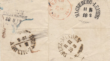 Das heißt, dass der Brief durch den Postvereinstaat Sachsen in Berlin (Preußen) angekommen ist. Von dort aus wurde er vermutlich wieder über das Herzogtum Braunschweig und Königreich Hannover nach Minden (Preußen) geschickt, von dort ging es weiter nach Köln-Deutz.