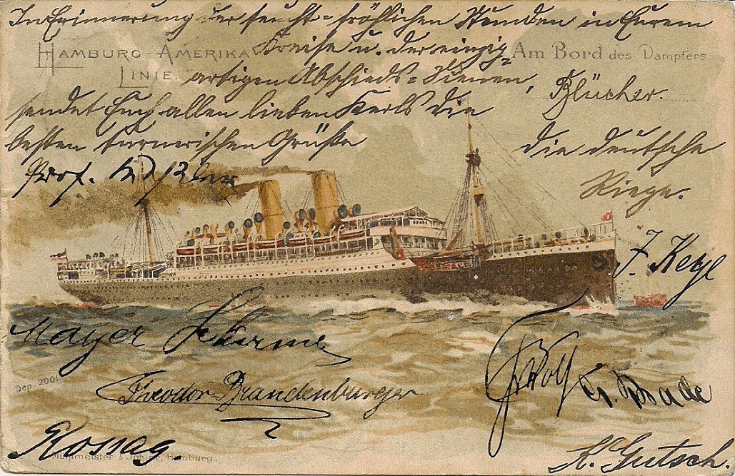Ich zeige heute einen in vielerlei Hinsicht interessanten Seepost-Beleg. Es handelt sich um eine Postkarte offenbar wohlbetuchter deutscher Turner, die es sich im Jahr 1905 leisten konnten ihre Turnkollegen in Philadelphia zu besuchen.