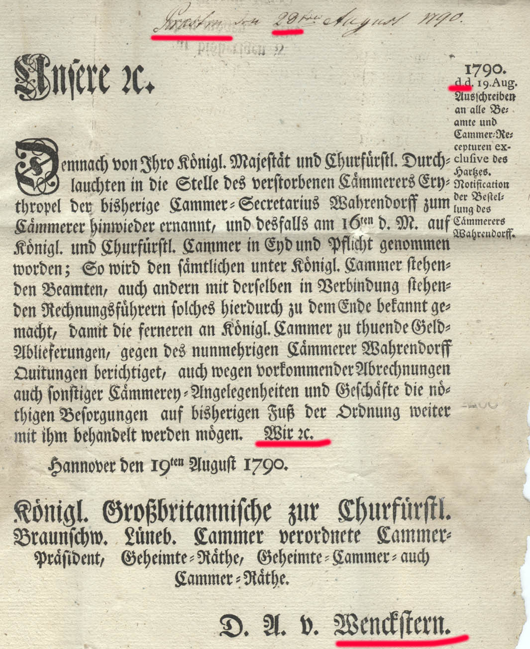 Der Brief ist aus dem Jahr 1790, damals gehörte Hannover zum Herzogtum Braunschweig und Lüneburg. (Chur-Braunschweig-Lüneburg, inoffiziell Chur-Hannover). Die regierenden Kurfürsten regierten m.E. in London.