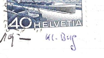 habe hier mal ein paar Briefe mit Kreuz und Wertziffer der erstere ist eine 65 B in grün da ist die linke Marke mit Farbflecken in Helvetia