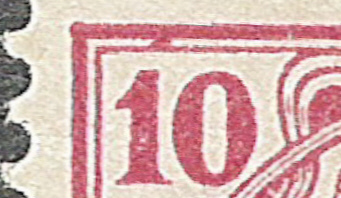 i Fuss beschädigt , Kerbe im O und S , linke Wertziffer 1 spitz zulaufend , und Farbkleckse am linken Rahmen