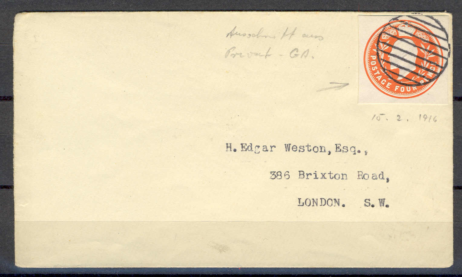 In Großbritannien war es eine Zeit legal. Hier ältere Belege Edward VII 4 Pence orange Privatganzsachenausschnitt mit Tarnstempel der Marine entwertet und ein ein schöner Brief in Kombination Ausschnitte und Zusammendruck.