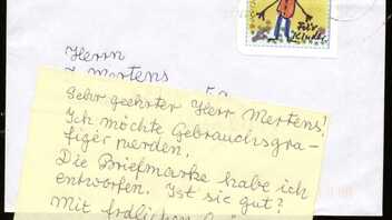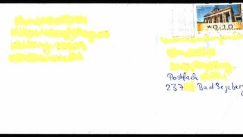Es wurde sicherheitshalber noch eine 5ct-Marke dazu geklebt um auch die Fluoreszenz für die Stempelmaschine sicherzustellen.