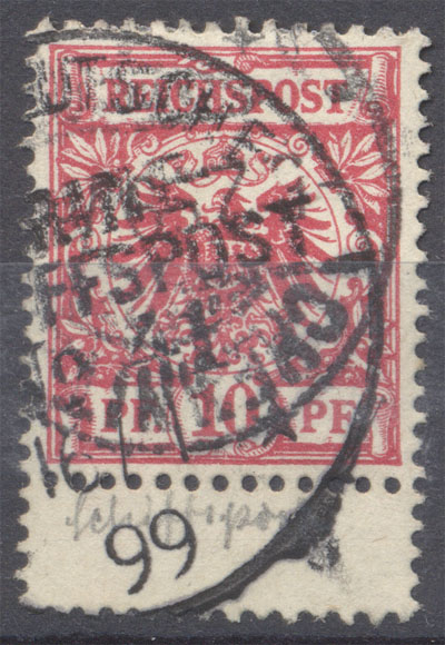 DR 1889, Reichsadler 10 Pf mit Marine-Schiffspost Stempel