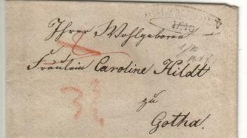 hier haben wir einen Auslandsbrief vor uns. Holzminden im Großherzogtum Braunschweig bis zur Grenze 2 Groschen, Grenze bis Zielort Gotha 1 3/4 Groschen. Jedes Postgebiet erforderte die Gebühr, die nach Entfernung und Gewicht durch Reglement festgesetzt war.