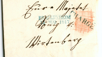 Charge Brief als Portobrief (was eigentlich überhaupt nicht zulässig war - der König zahlt doch kein Porto) von Schwäbisch Hall an König Wilhelm I. nach Stuttgart vom 25. März 1818. Dieser ist zweiseitig beschrieben und von 4 Personen unterschrieben. Das Siegel ist ebenfalls so stark beschädigt, um es zu entschlüsseln. Interessant ist auch, daß keine CHARGE Nr. angegeben ist.