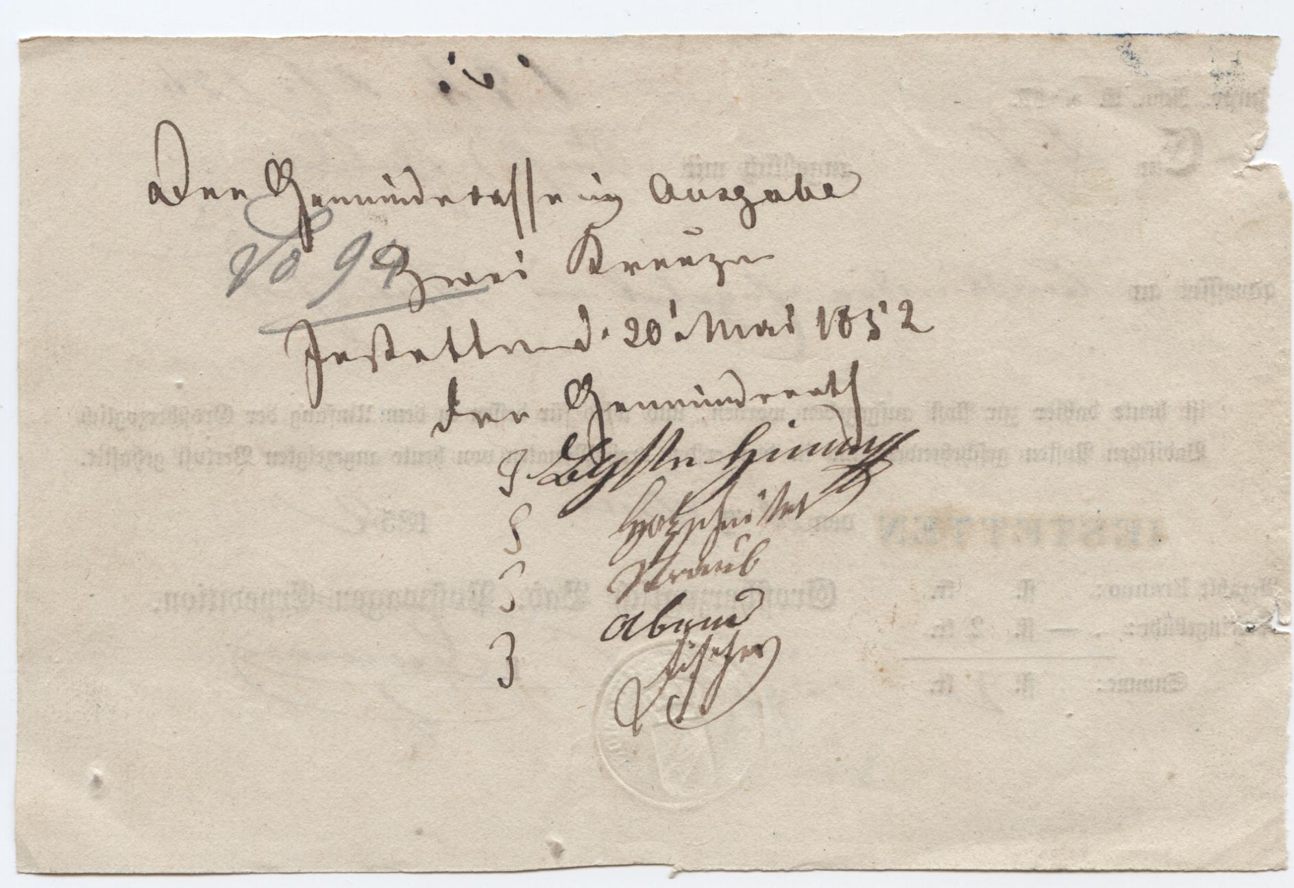 bezahlt wurden hier 2 Kreuzer für die Scheingebühr.