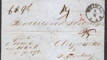 1) Ein ursprünglich portofrei belassener Brief mit der Franchise unten links Hr. Horn aus ?? mit Aufgabestempel G..KL(?) nach Neu - Bernhardt oder Nieder - Bernhardt, der aber bei der Abgabe mit 6 ?? taxiert portopflichtig war. Absendeort war die Herrschafft Dobra (?), wie ich dem Inhalt zu entnehmen versuche.