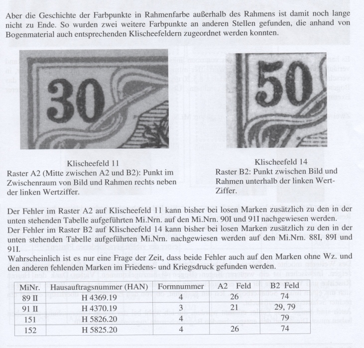 Ein Paar schöne Besonderheiten bei den Zweifarbendruckmarken der Germania Ausgaben ,diese Fehler Kommen bei den Marken ohne WZ sowie